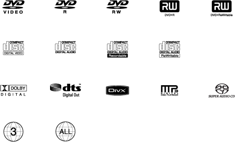 Dolby Digital, DTS, DivX, MP3, Super Audio CD