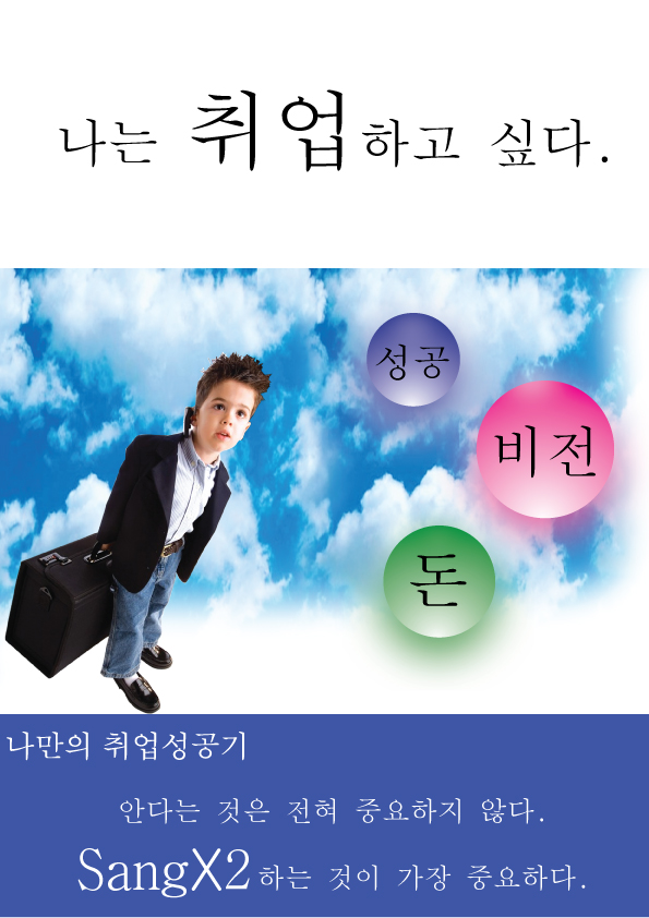 좀 더 디테일하게 작업하셔야 할 것 같아요. 저도 인사를 담당하는 디자인 실장으로 있는데 죄송하지만 이런 퀄리티로는 힘듭니다. 명조 고딕이 적절히 배치되는건 기본이구요, 아이콘 하나하나도 좀 더 섬세히 작업하시고... 행간도 좀 조절해보시고...작업을 쉽게 쉽게 편한쪽으로만 하다보면 실력이 늘지 않습니다.
